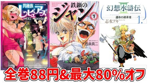 【Kindleセール情報】カドカワ大感謝祭で『鉄鍋のジャン』全巻88円、『異種族レビュアーズ』全巻88~151円など!