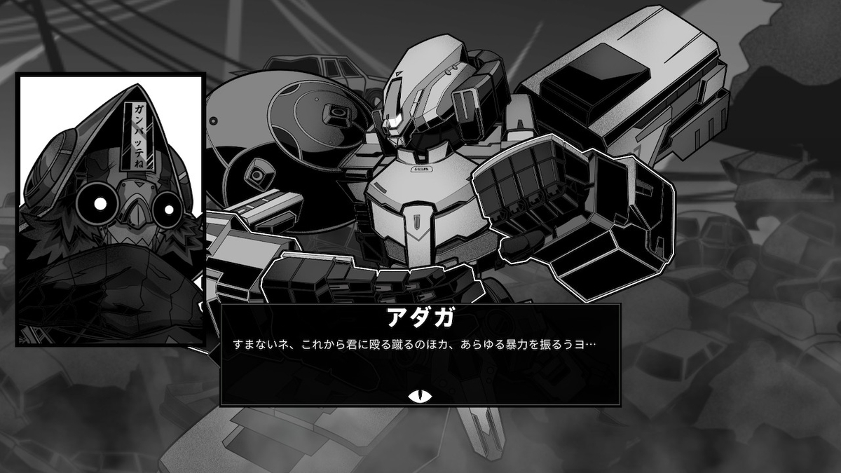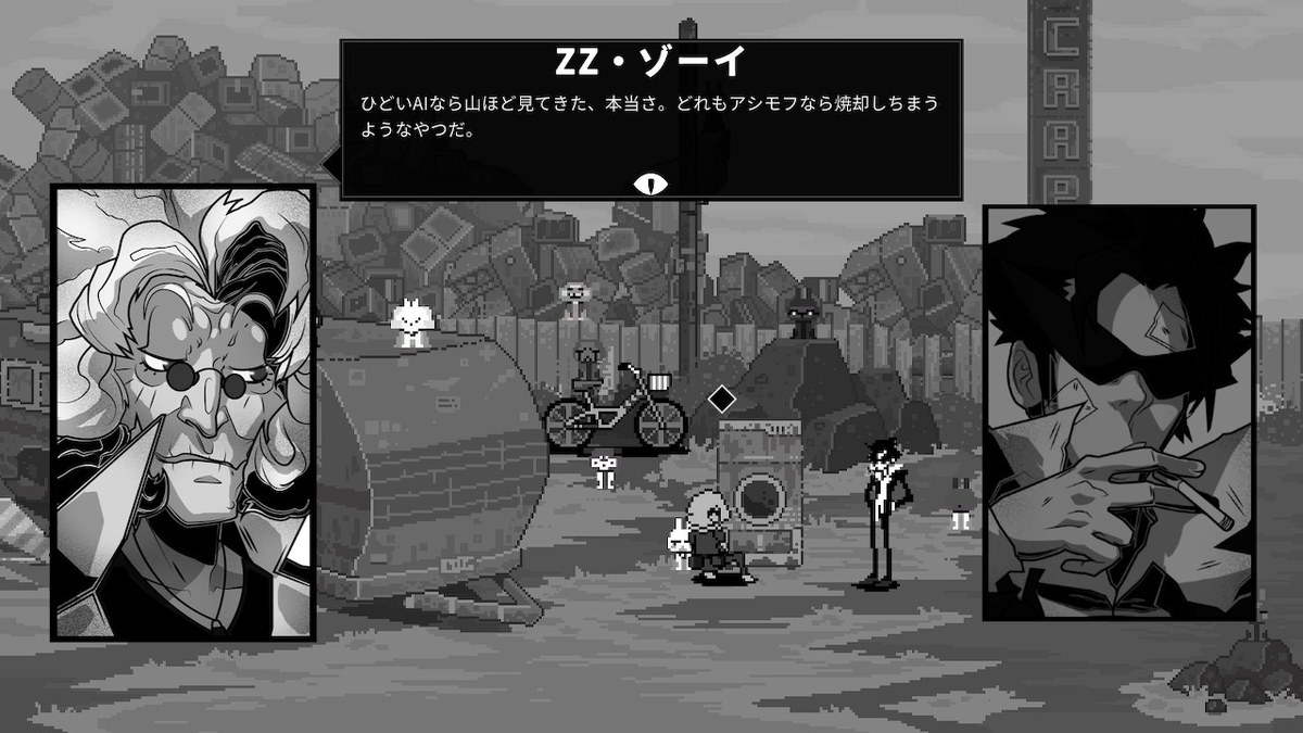 モノクロのグラフィックで表現されたハードボイルドなロボRPGだ。