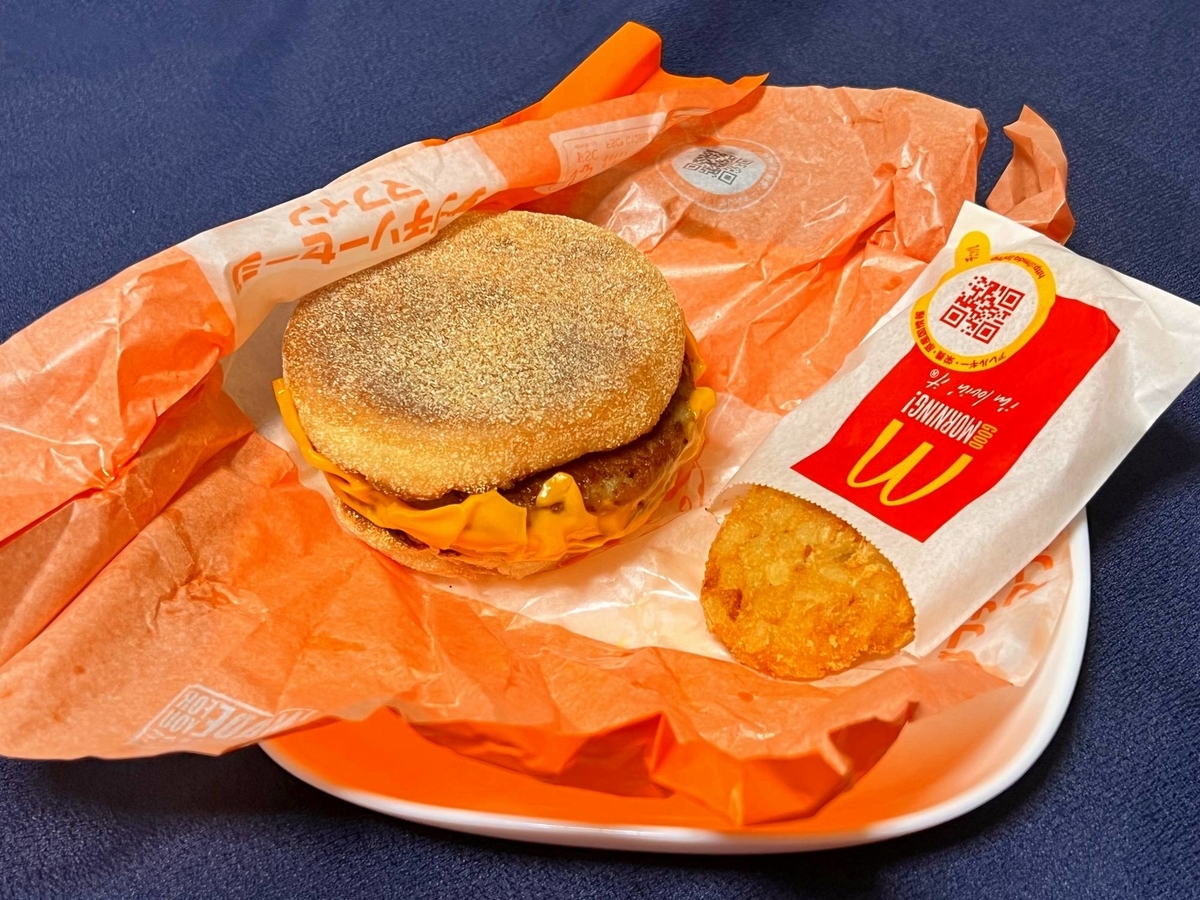 7月5日のあさごはんは朝マックのダブチソーセージマックセット。