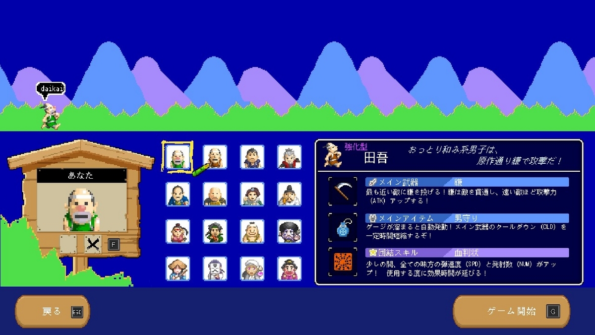 これ以外のモード選択や難易度選択は一切存在しない割り切った作り。