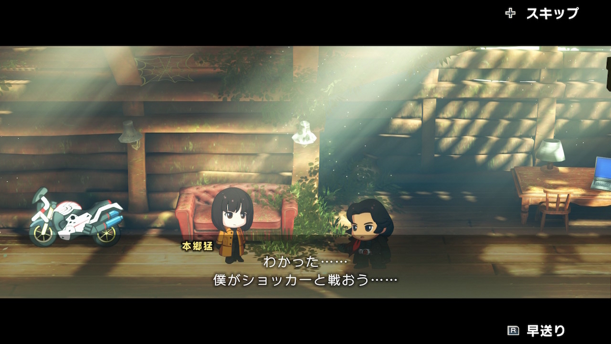 ゲーム部分は必殺技が使えない本郷からスタート。