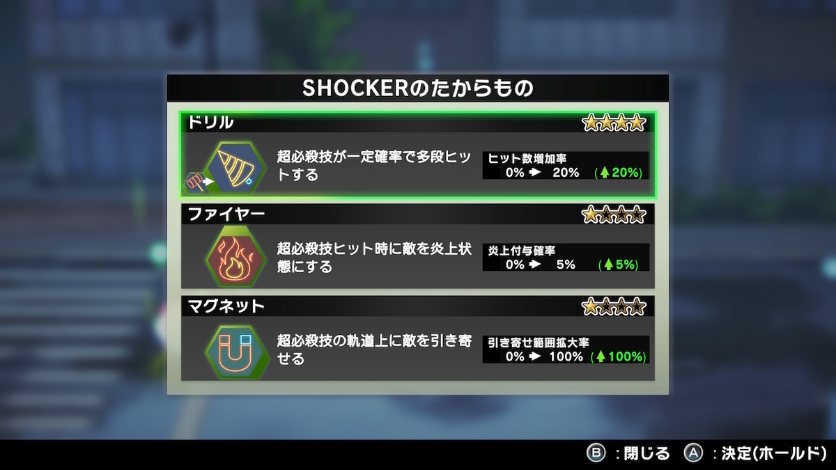 食べ物だけでなく超必殺技を強化するパーツも存在。