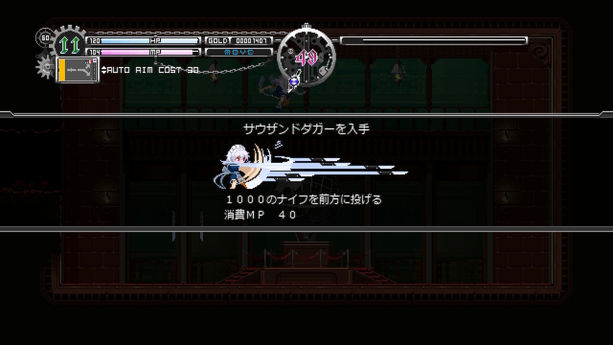 メイン武器であると投げナイフと、時間操作能力、多彩なスキル技を活用して進んでいく。