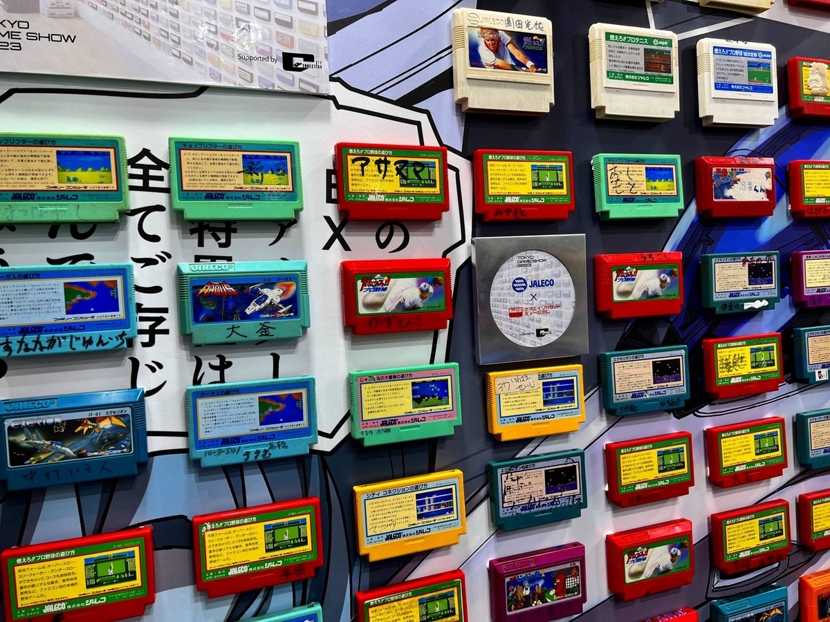 としての活動であり、壁には名前の書かれたジャレコのファミコンカセットがズラリ!