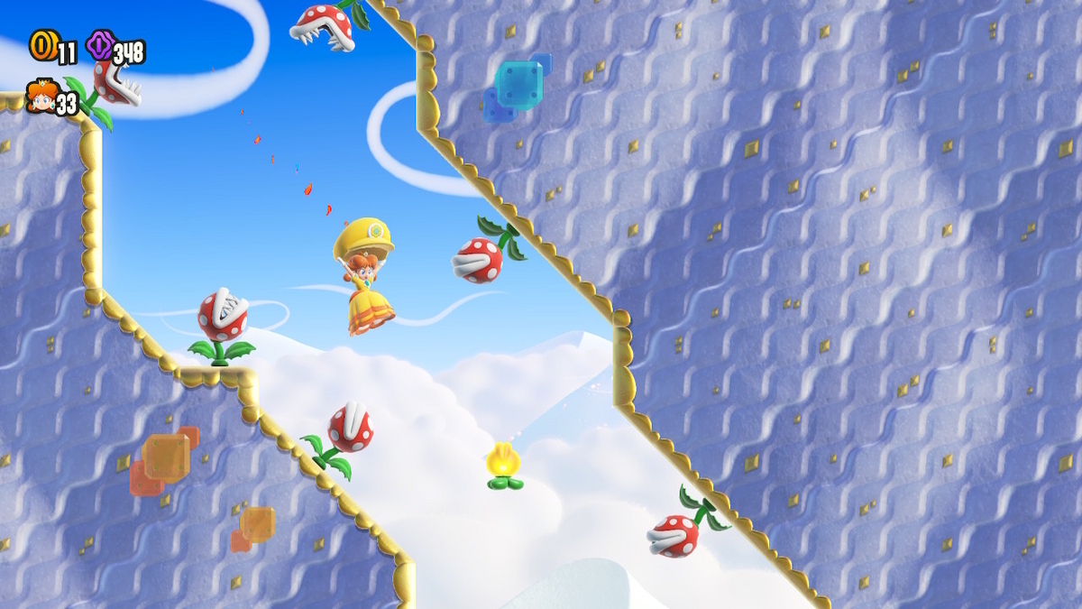 救済措置が豊富だし、やり込み要素である3枚のフラワーコインも、1回取ればやられても取ったことになる。遊びやすいバランスだ。