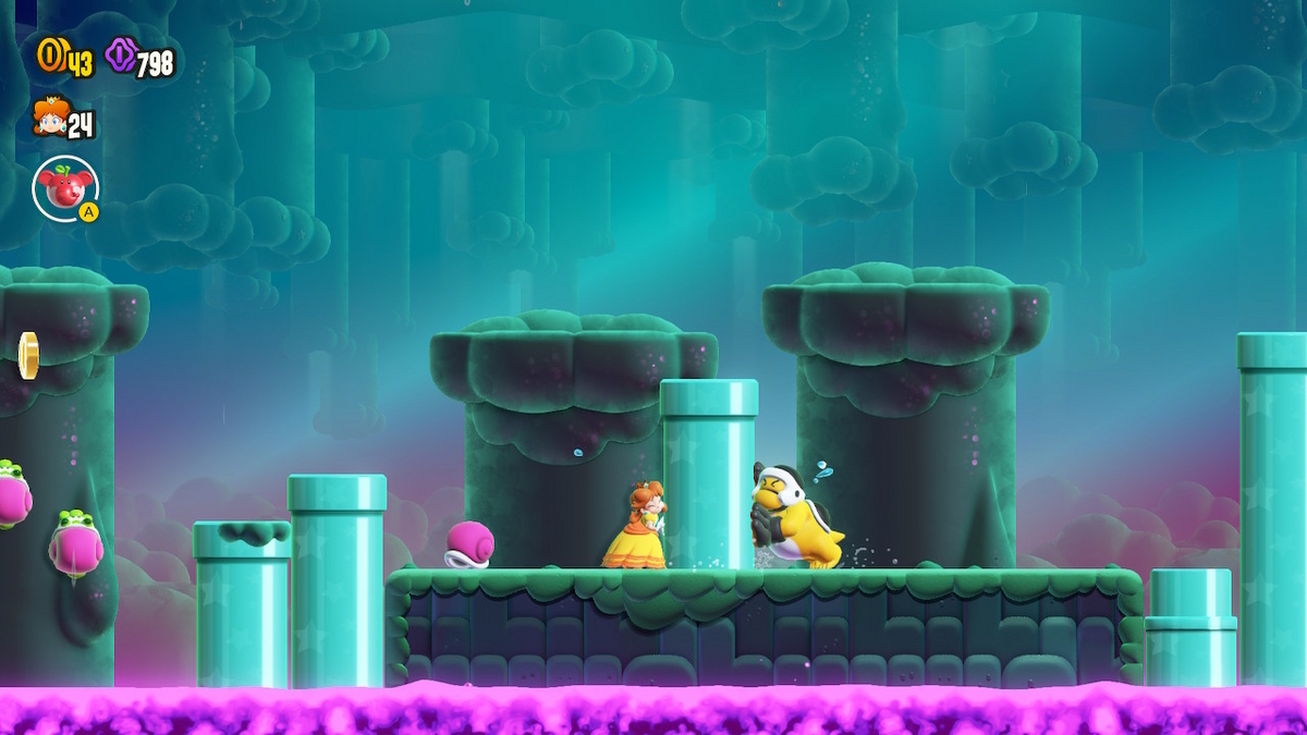 メガブロスと土管の押し合いで勝てるデイジーの怪力を見よ!