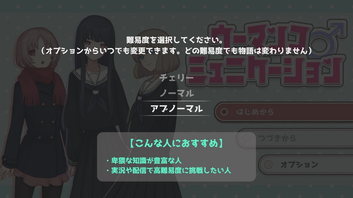 チェリー/ノーマル/アブノーマルというパンチの効いた難易度が用意されているが、