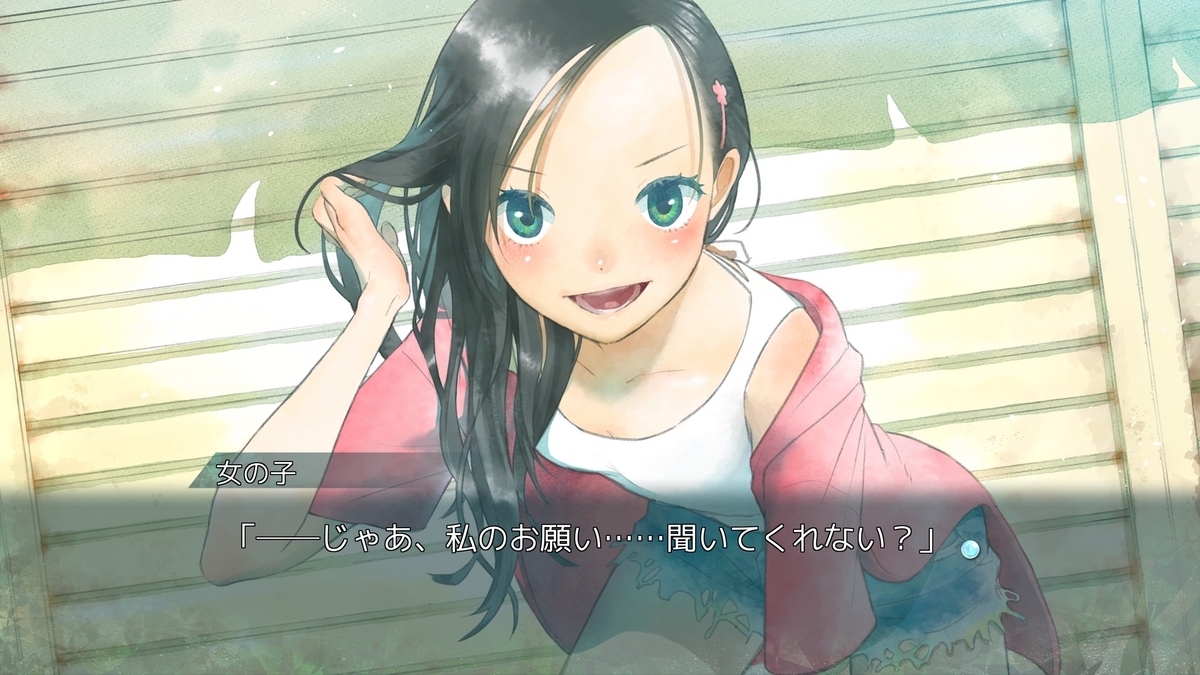 水彩風の綺麗なスチルが沢山あるところは良かったし、めっちゃ夏感ある主題歌やフルボイスも頑張ってる点だった。