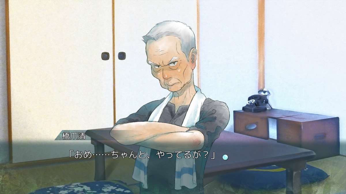 煮え切らない生活を送っている主人公の成長物語がシナリオの軸であり、距離感のある祖父との会話や、一歩踏み出せない描写の数々にヤキモキさせられるぜ。