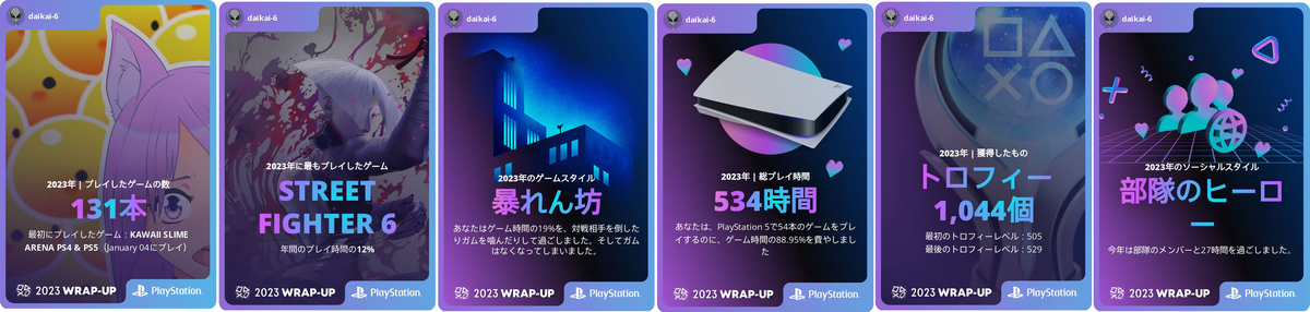 Switch、PS、Steamと、主要なゲーム関連アカウントで今年の2023年を振り返る機能が公開中だ。毎日ゲームしかやってない俺としては当然ッ!全部チェックするぜ!