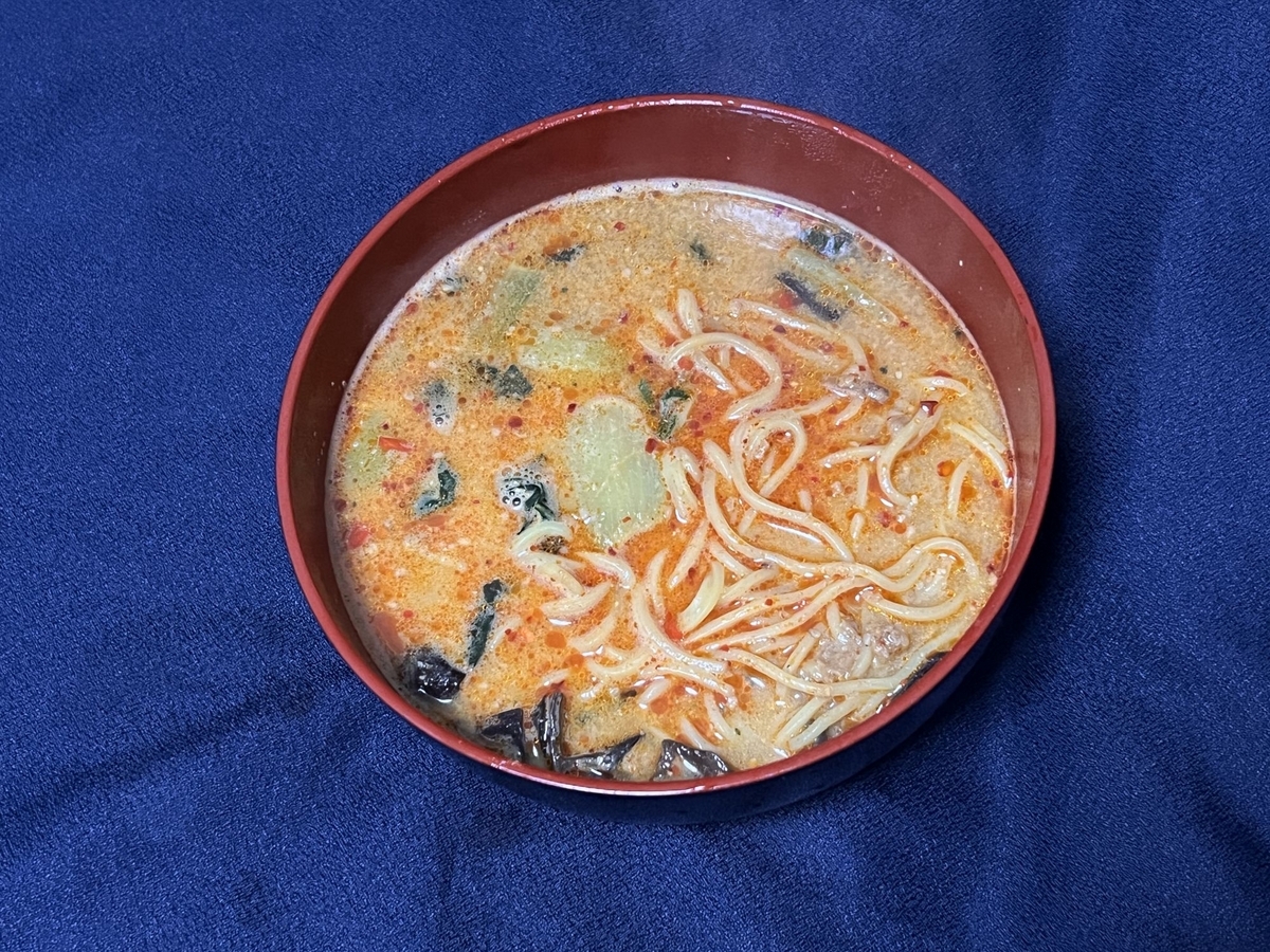 家にあった「とんこつ辛味噌」瓶とラー油を入れたらグッと味が奥深くなった。