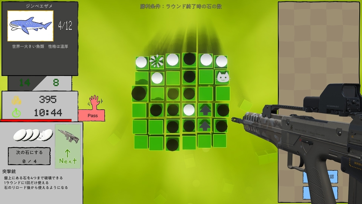 銃撃で盤上にある好きな石を4つ破壊できるぞ!強すぎる!やはり銃が最強!