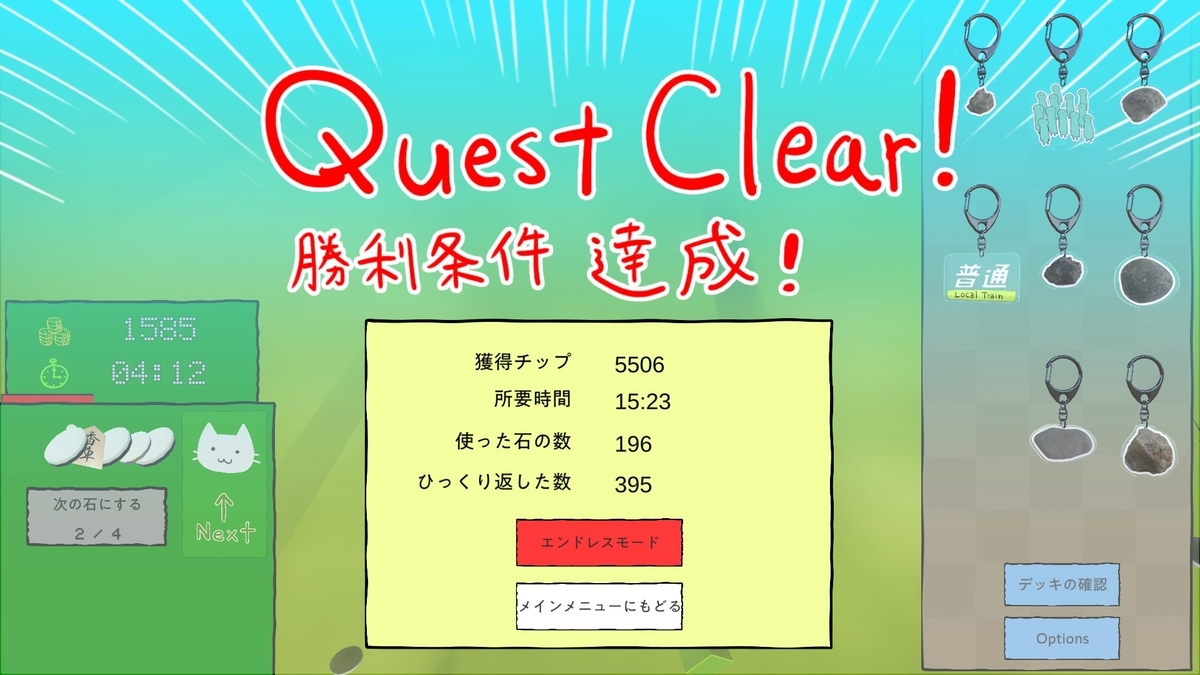 次に来る石が表示されており、今は使いたくない石が来たら飛ばすコマンドが数回だけ使えたり、手持ちの石を使い切ったらリロードが挟まって相手に1回多く行動される仕様などは、戦略が考えられていて好きな点だな。