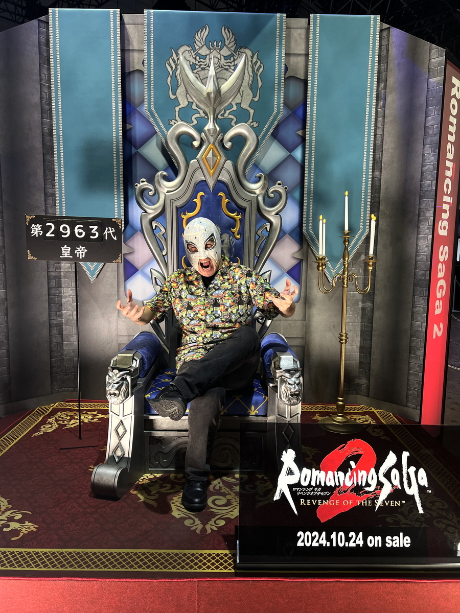 スクウェア・エニックスブースでは10月24日発売『ロマンシング サガ2 リベンジオブザセブン』の宣伝で玉座のフォトスポットが設置!