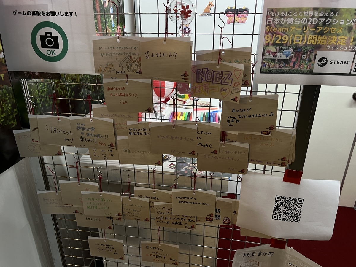 絵馬ペーパーにコメントを書き込んでぶら下げるコーナーもあったて充実したブース。