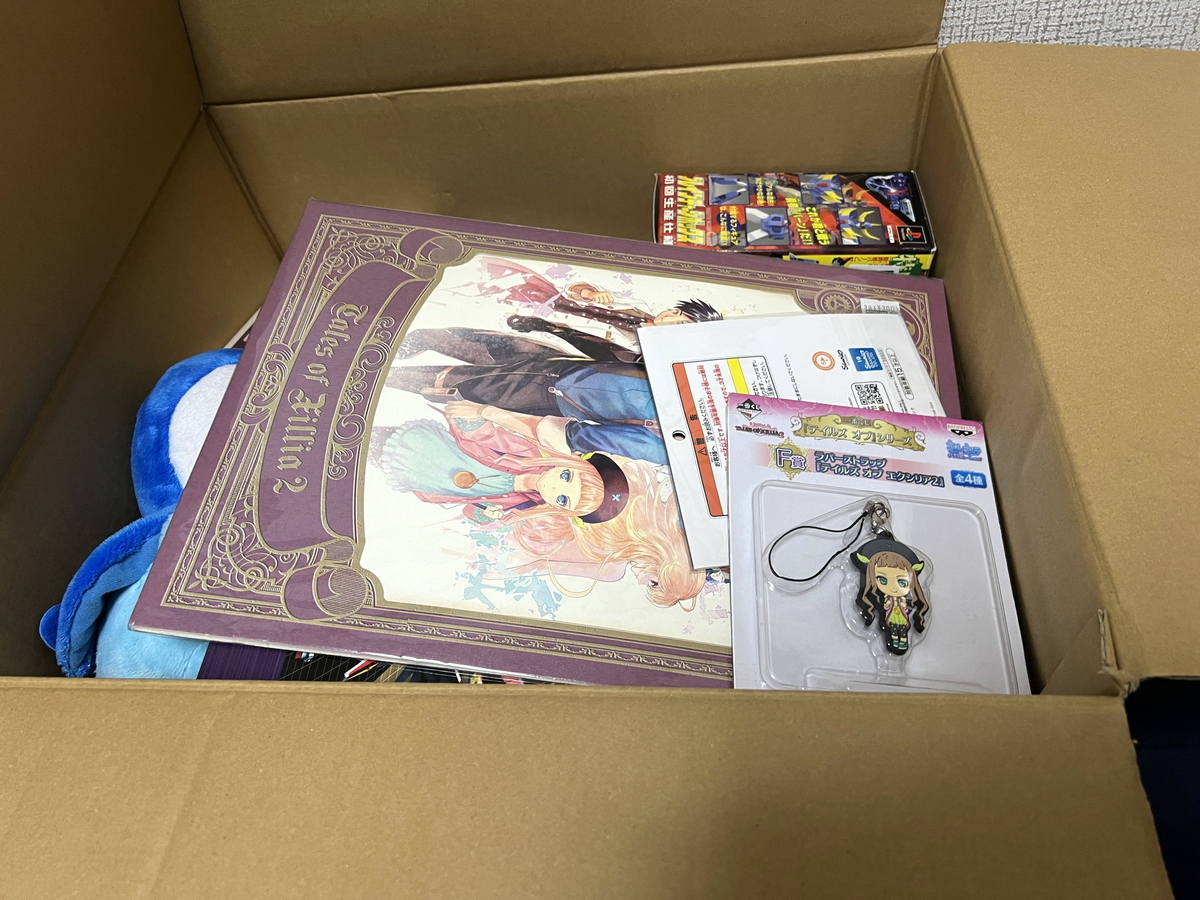 『テイルズオブエクシリア2』の特典か何かに、テイルズ関連の一番くじのキーホルダーにストラップ。ガンダムウォーのコンプリートガイドvol4も入ってた。2004年のTCGの本だぜ!?