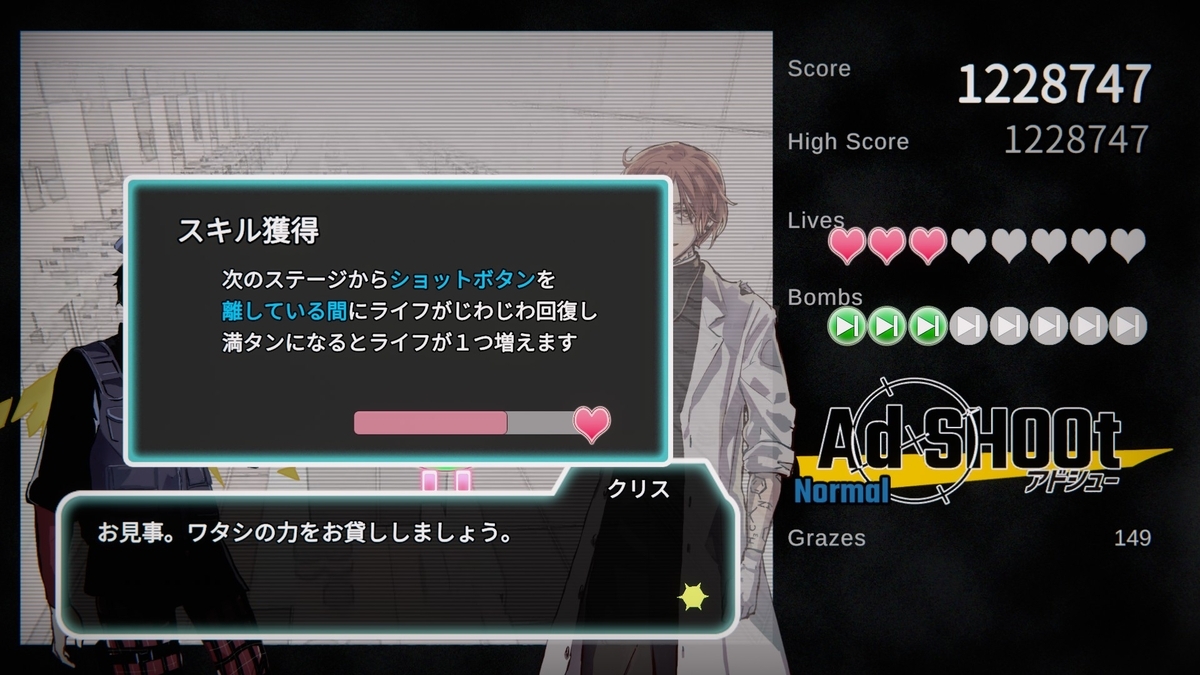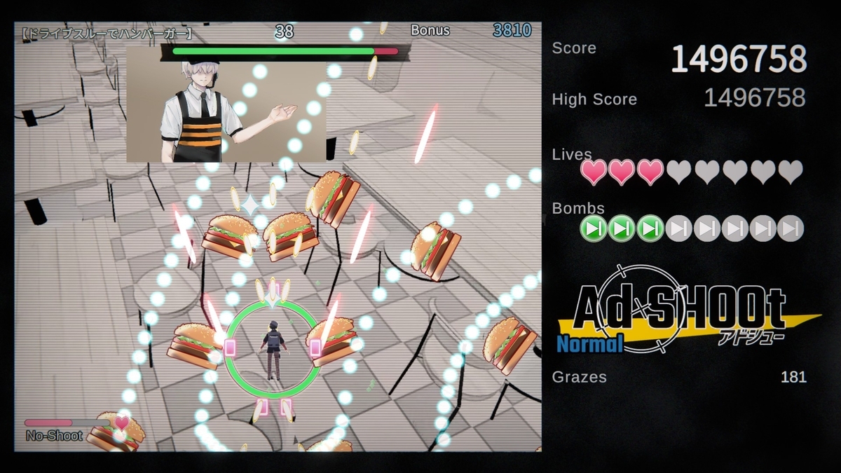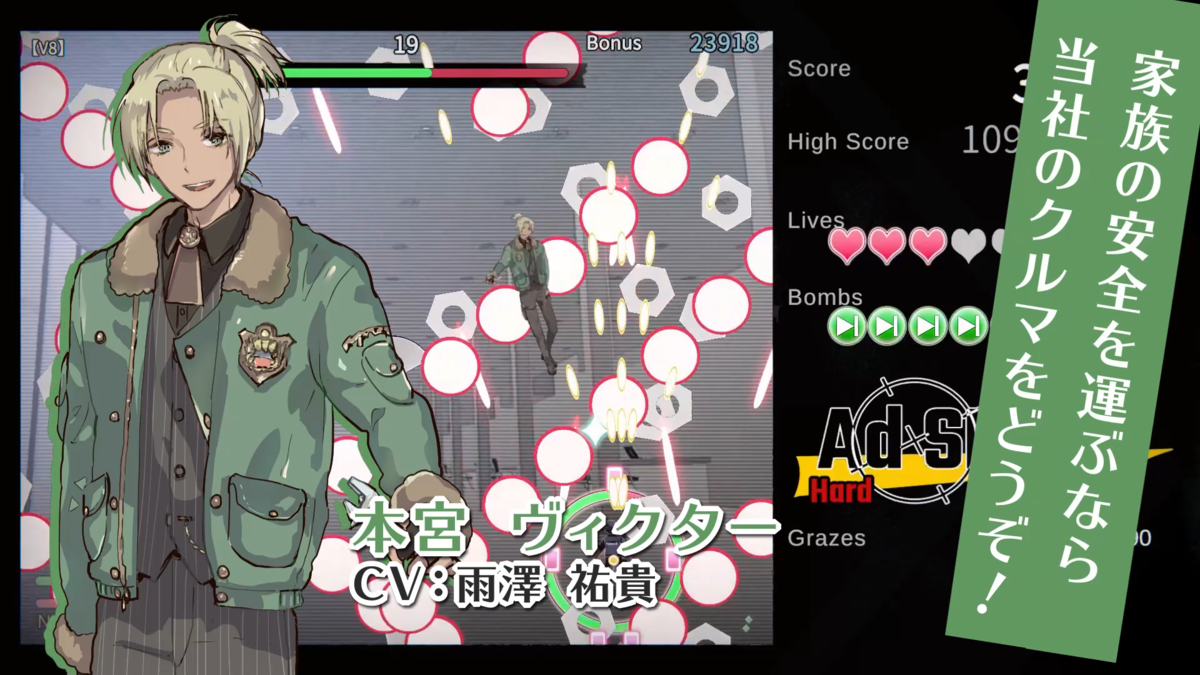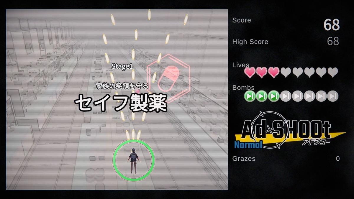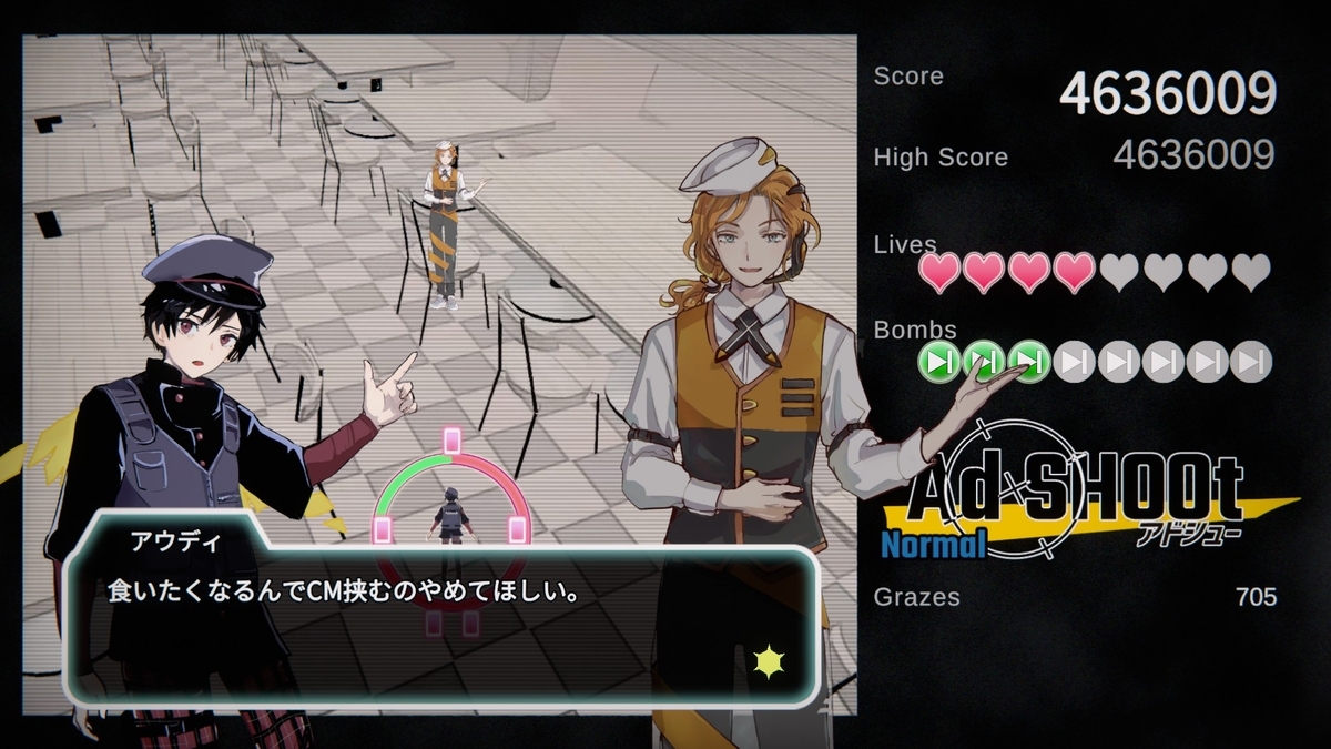 コンセプト含めてそれなりに面白かったが、既存の弾幕シューティングの敵や弾幕を広告っぽいデザインに置き換えただけに感じる場面が多かったし、その広告っぽさも演出がチープで薄かったりする。ゲームとしてはオーソドックスで遊びやすいとも言えるが、スキルも含めてもっとハチャメチャな内容が見たかった。キャラが良いだけに会話デモが少なめなのも惜しい点だが、その辺は公式サイトの4コマでフォローしてるね。