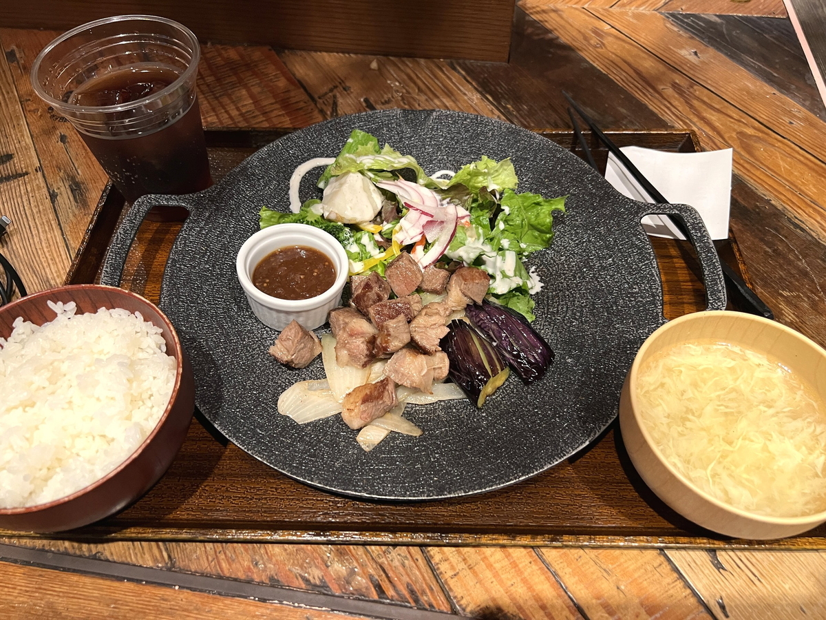 東京ゲームショウ帰りの晩飯もついでに紹介。27日のあさごはんは永田町駅で食べたステーキ定食。思ったより肉が少なかったが、付け合わせの野菜とソースがうまかったのでトータルの満足度高かった。